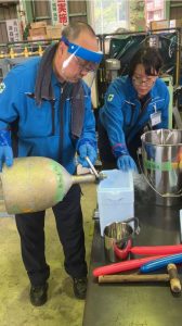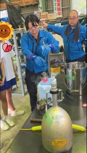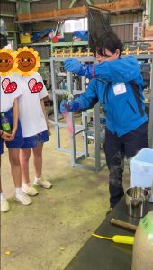 午後からは社内見学や溶接作業の見学、液体窒素を使用した実験を行いました!