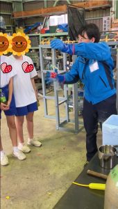 ※溶接見学・液体窒素実験時には、社員の立会い、注意事項説明、換気、保護具の着用などを行い、安全に配慮し行っています。